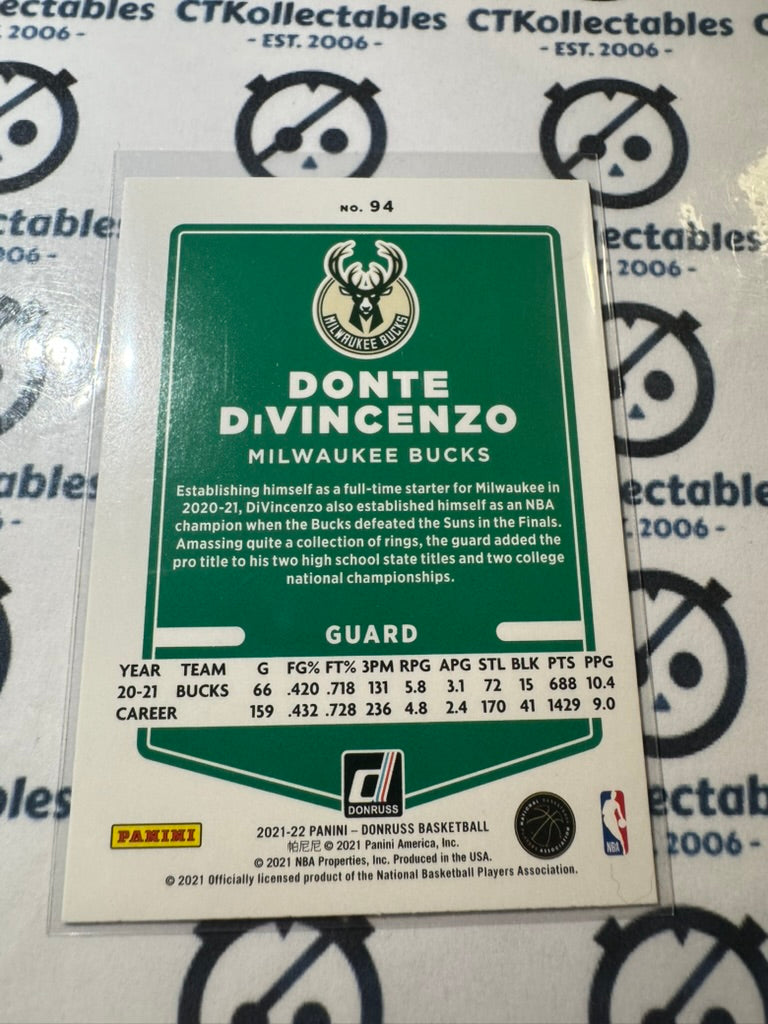 2021-22 NBA Donruss Donte DiVincenzo Green Laser #94 Bucks