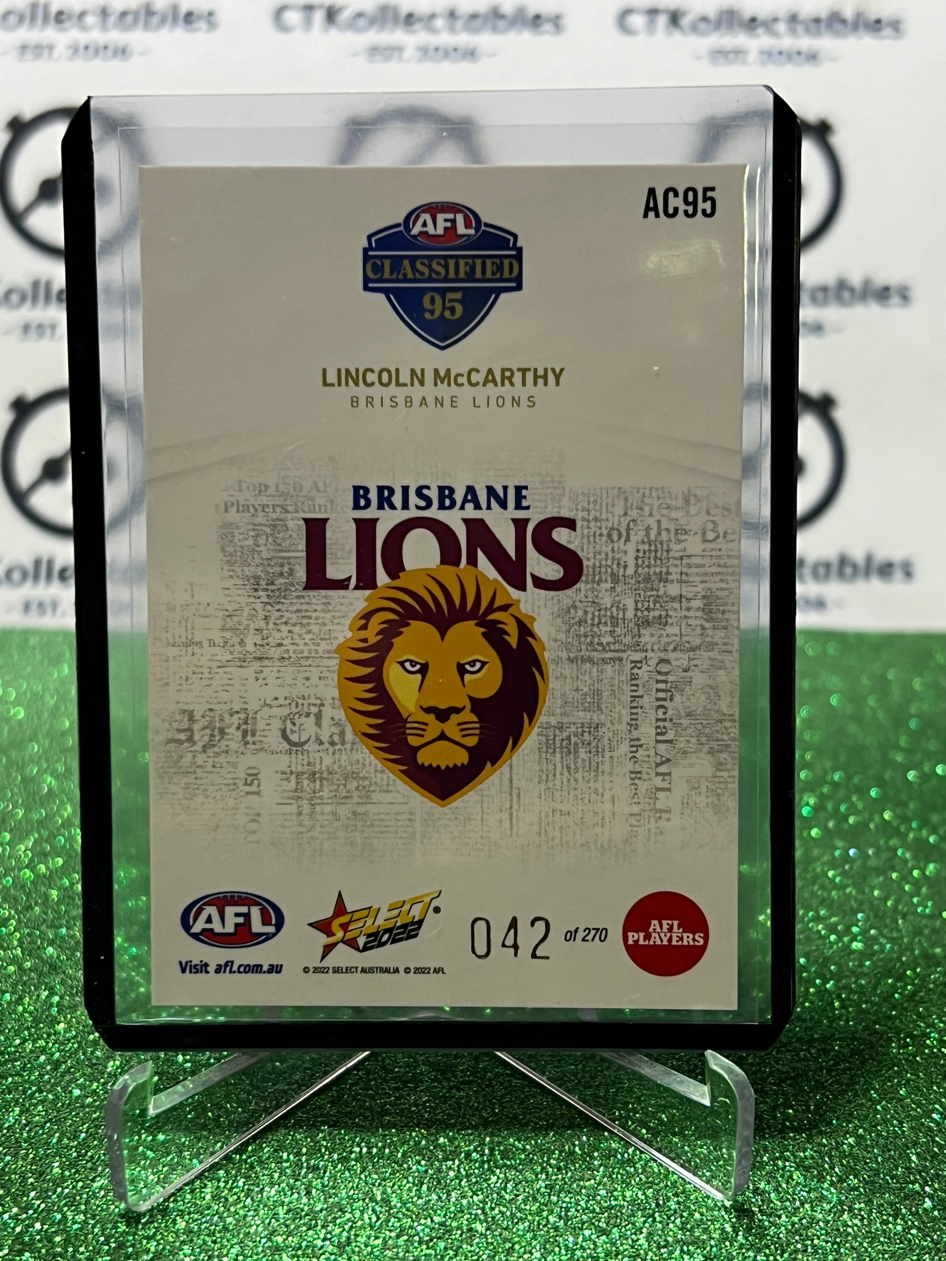 2022 AFL SELECT FOOTY STARS LINCOLN McCARTHY # AC95 BRISBANE LIONS CLASSIFIED / 270 TRADING CARD