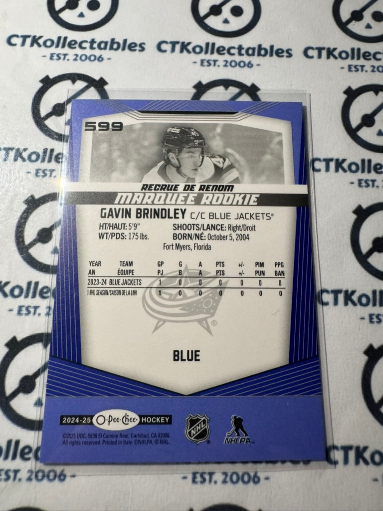 2024-25 O-Pee-Chee Hockey BLUE BORDER #599 Gavin Brindley Columbus