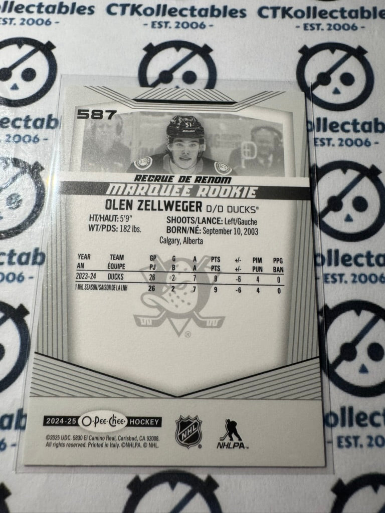 2024-25 O-Pee-Chee Hockey Marquee Rookie #587 Olen Zellweger Anaheim Ducks