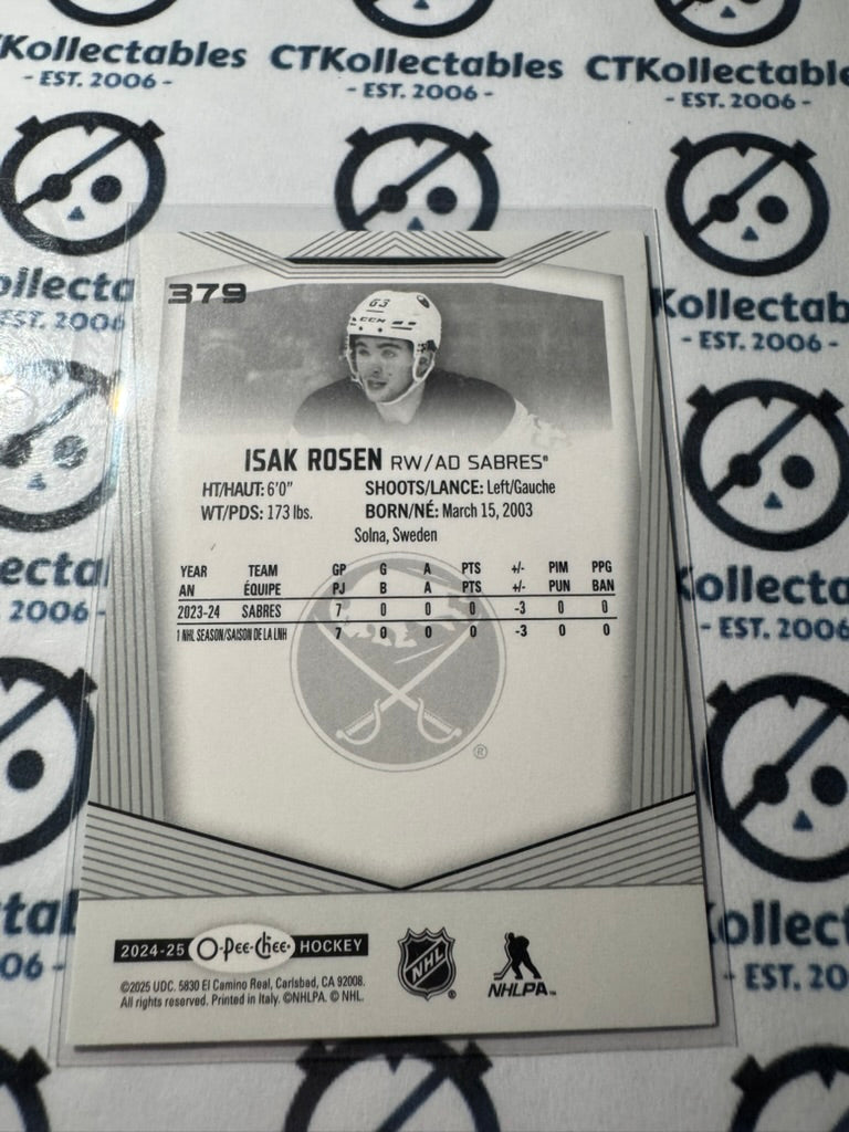 2024-25 O-Pee-Chee Hockey Rookie Card #379 Isak Rosen Buffalo Sabres