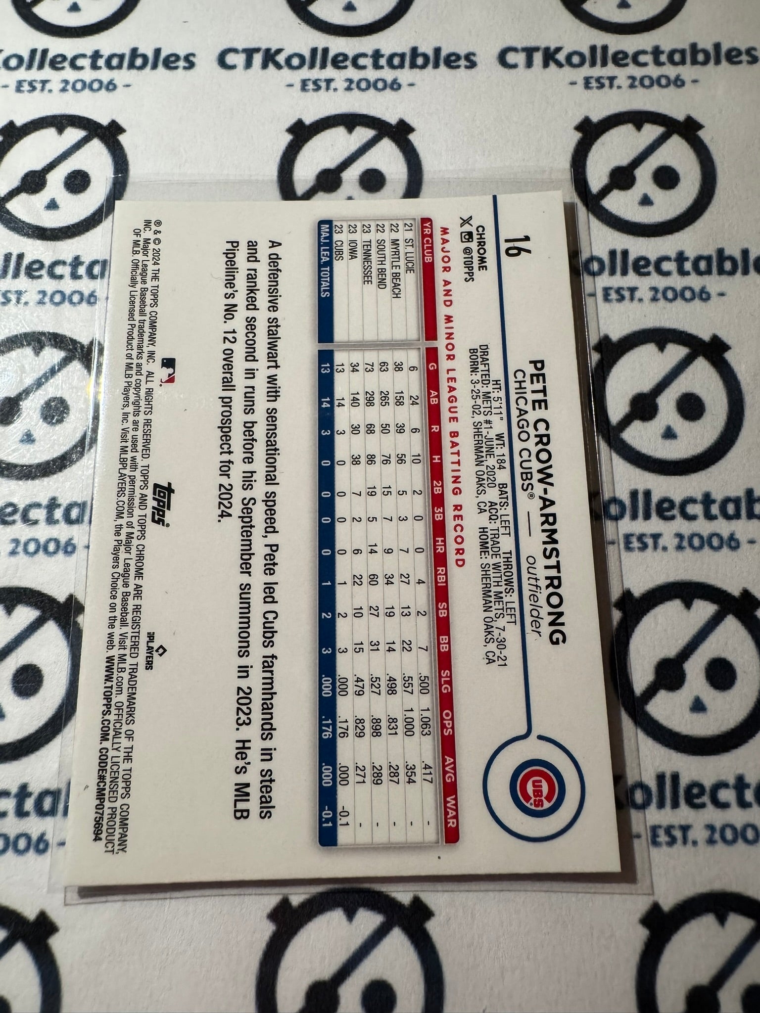 2024 Topps Chrome Baseball Pete Crow-Armstrong rookie card RC #16 Cubs