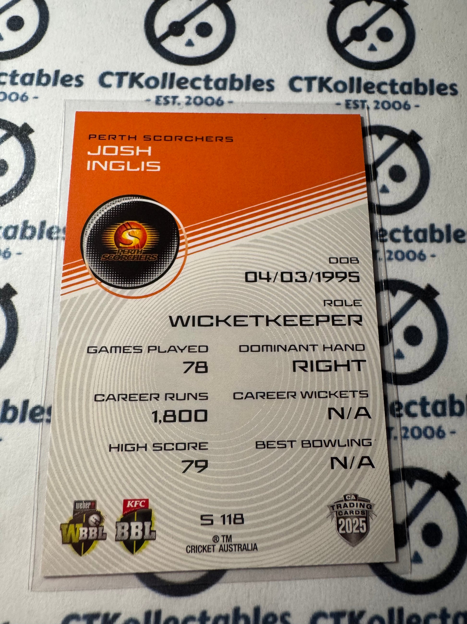 2025/26 CA Cricket Traders Josh Inglis Silver Parallel #S118 Scorchers