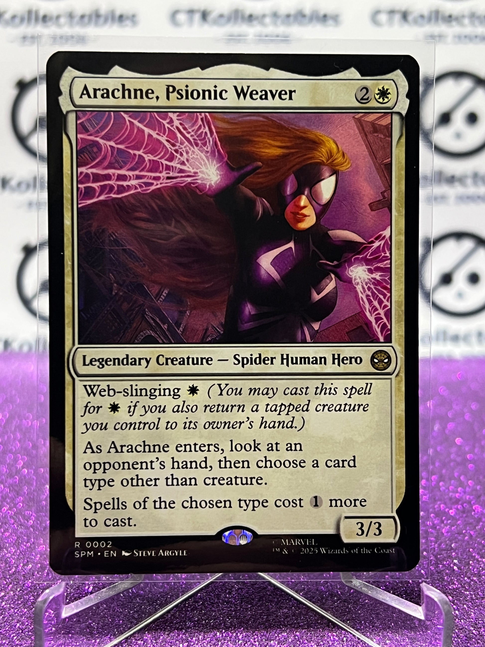 2025 MAGIC THE GATHERING SPIDER-MAN ARACHNE,PSIONIC WEAVER # R 0002 RARE NON-FOIL LEGENDARY CREATURE CARD