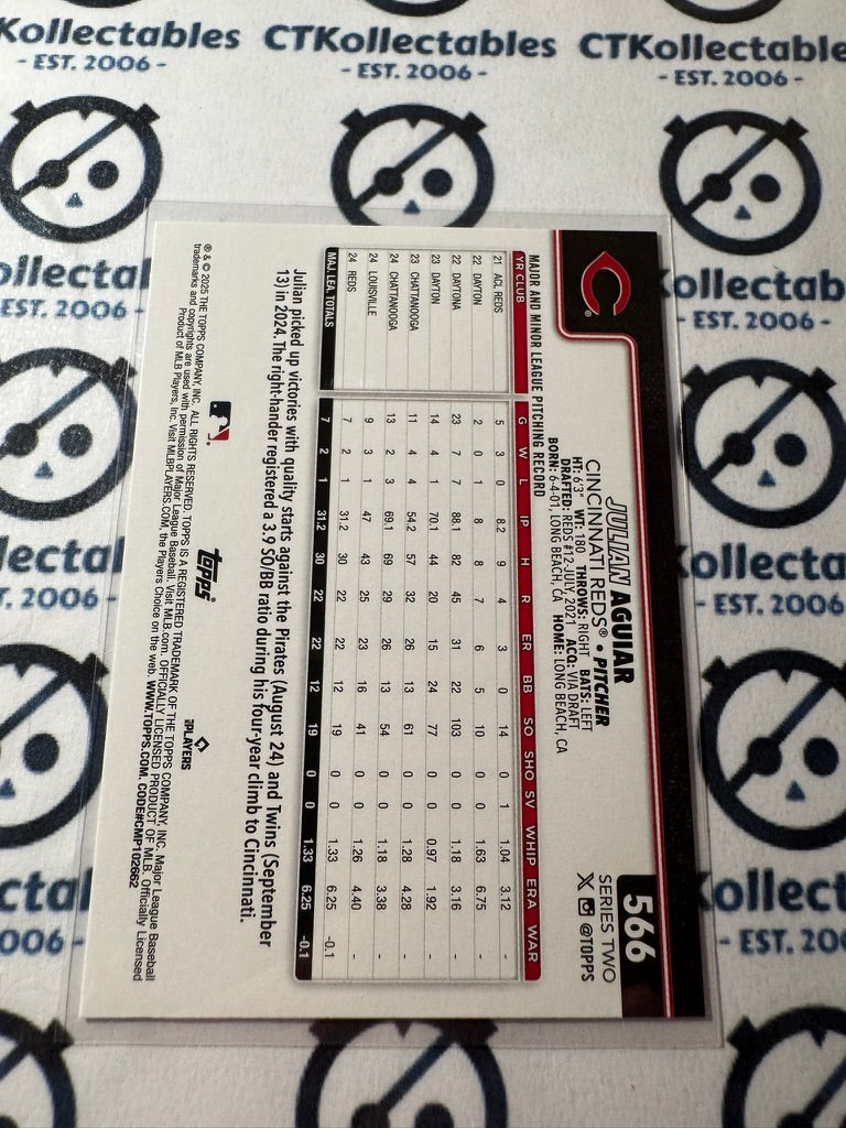 2025 Topps Series 2 Baseball Rookie Card #566 Julian Aguiar Cincinnati Reds RC