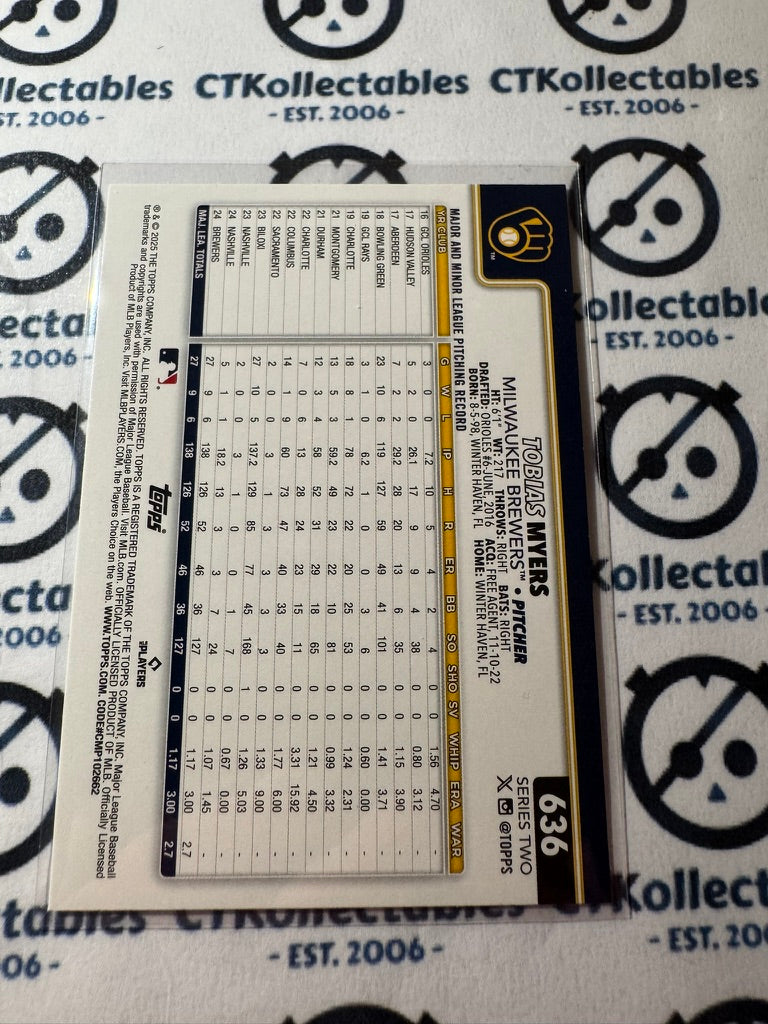 2025 Topps Series 2 Baseball Tobias Myers Future Stars Silver Rainbow Foil #636