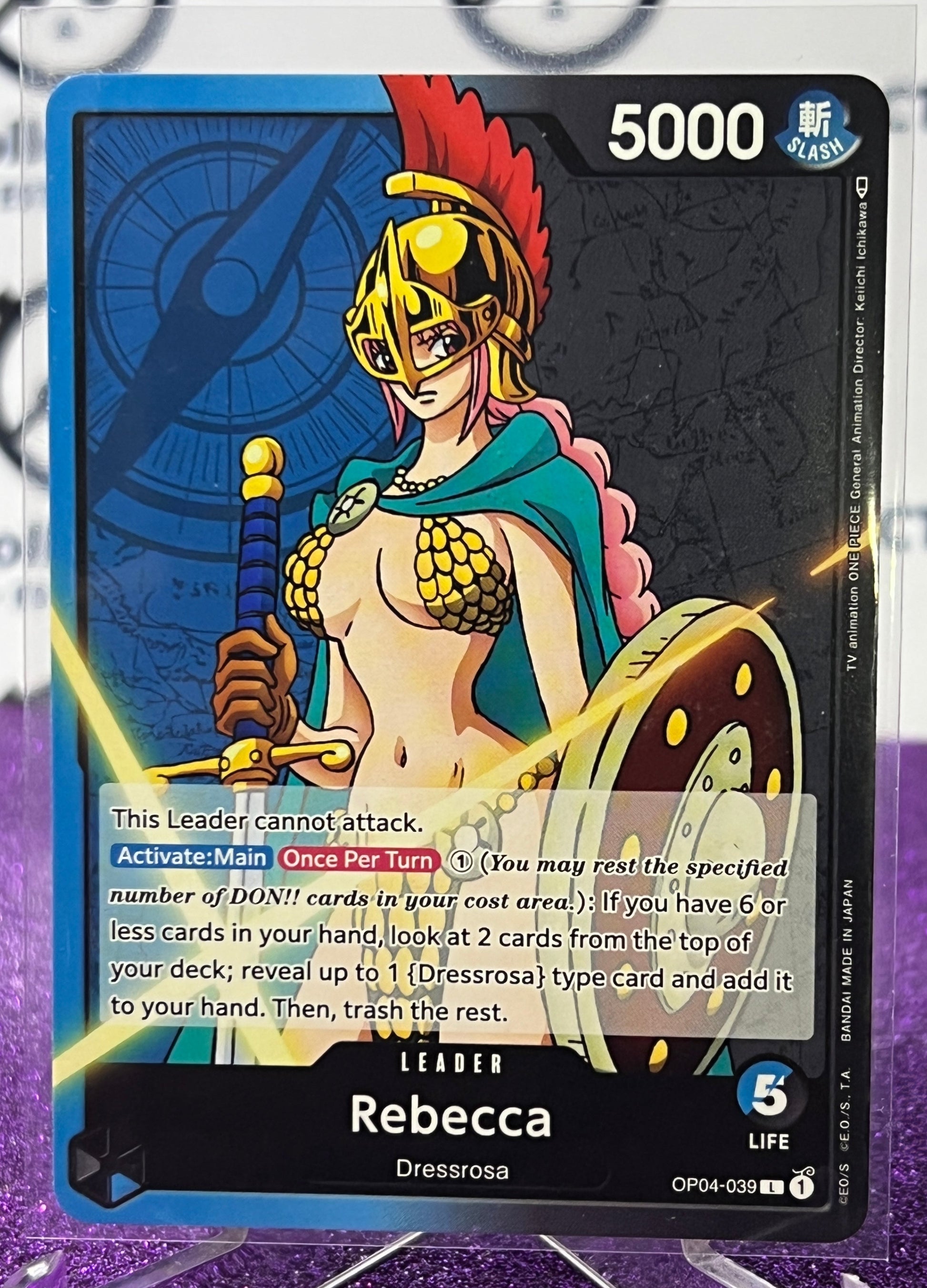 ONE PIECE CARD GAME REBECCA # OP04-039 LEADER CARD 2023
